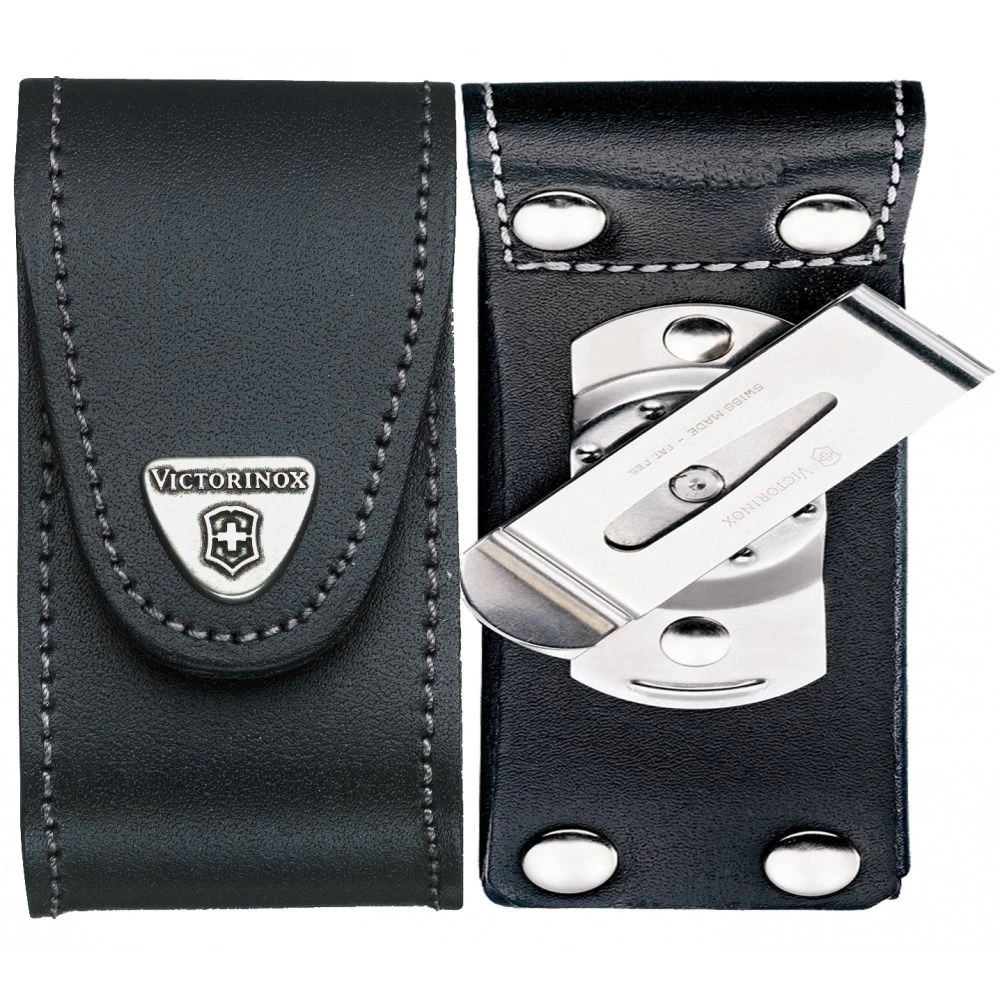 Victorinox Black Leather Pouch 91/93 Mm 5-8 Layers With Rotating Clip
