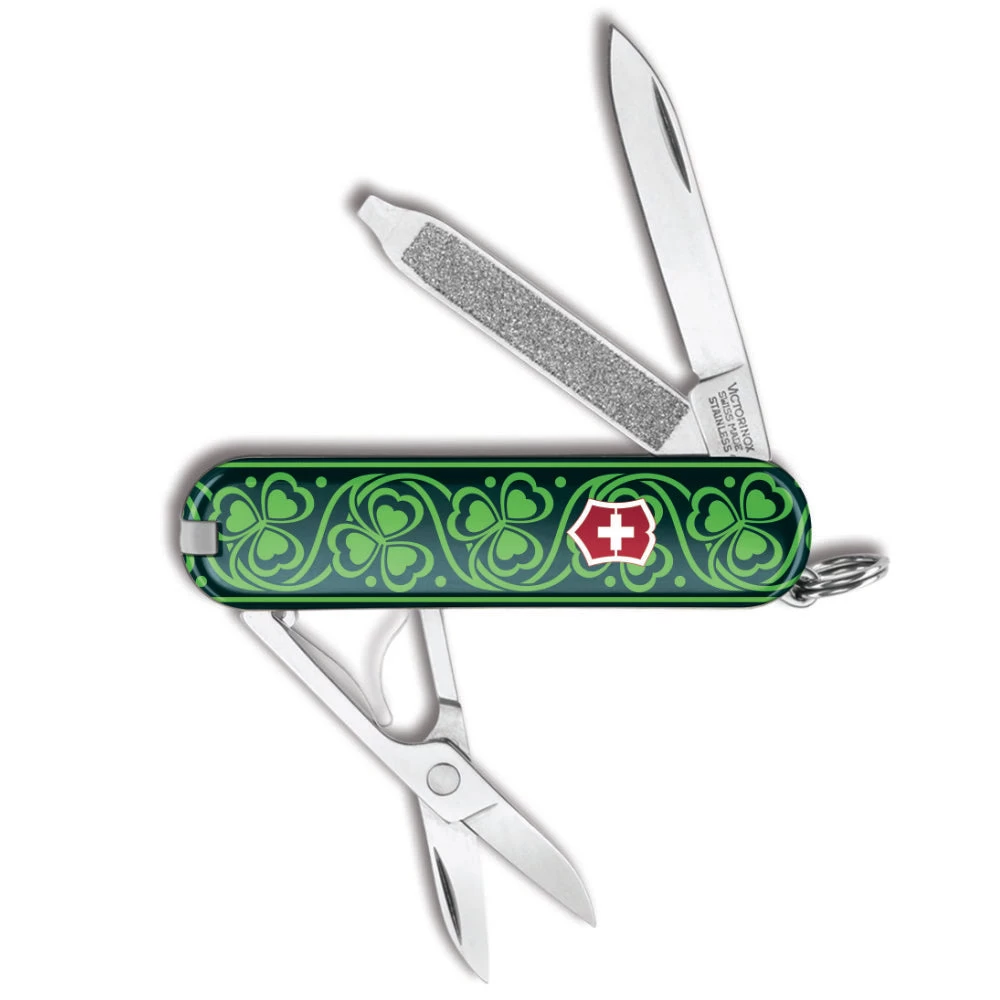 The Celtic Classic SD Limited Edition Swiss Army Knife by Victorinox is a Swiss Knife Shop exclusive showcasing a beautiful shamrock Celtic Knot design – sure to please those who are Irish or even Irish at heart.