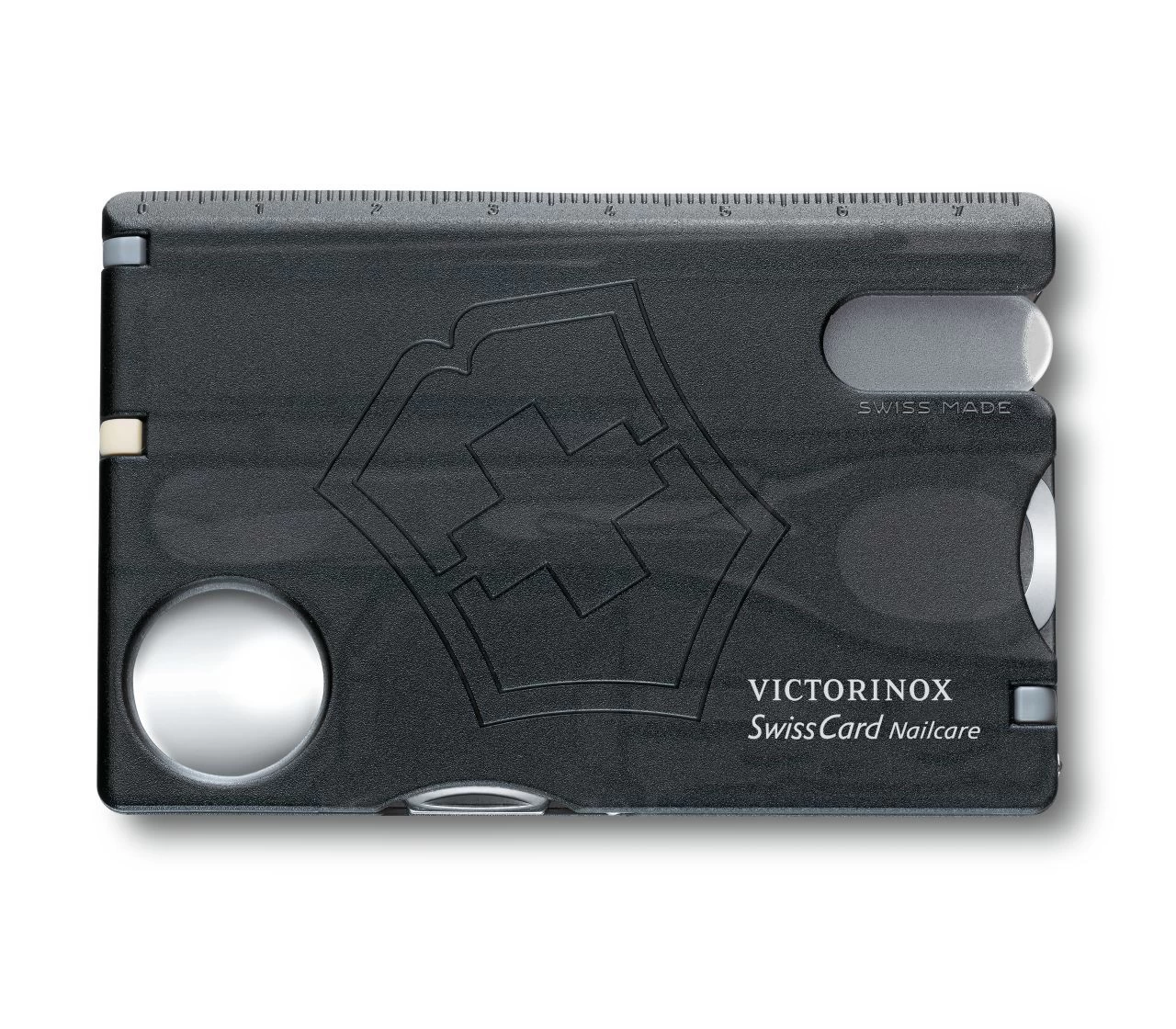 The SwissCard Nailcare boasts a new function that no other Swiss Army Knife has – the glass nail file. This shines with a technical specialty. The abrasive grains are not mechanically applied onto the file body as usual, but rather ncorporated into the glass. This prevents the file from losing its strength and edge. The glass file can be cleaned quickly under warm water. Use the incorporated scissors to trim finger nails and smooth off the edges with the glass nail file. Our insider tip is to use the Quattro screwdriver as a nail cleaner. Conveniently stored in your purse, handbag or pocket, the SwissCard Nailcare is always close at hand.