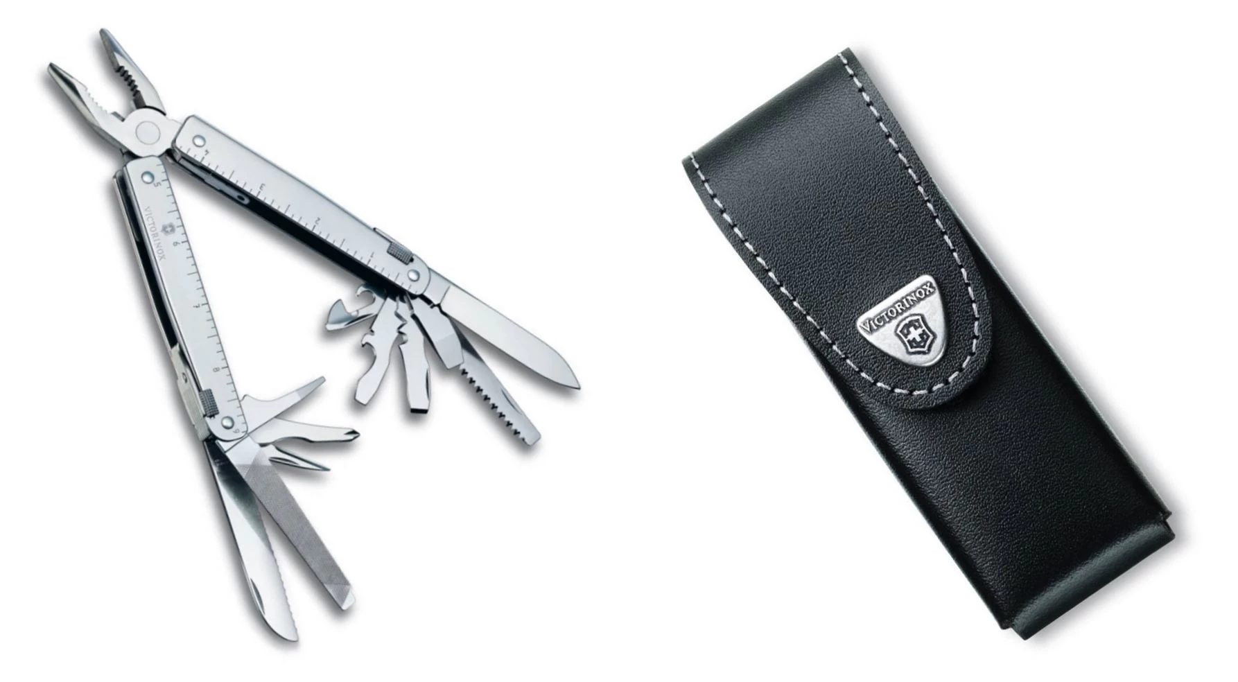 The classic SwissTool: with serrated blade and multi-tool long nosed pliers.