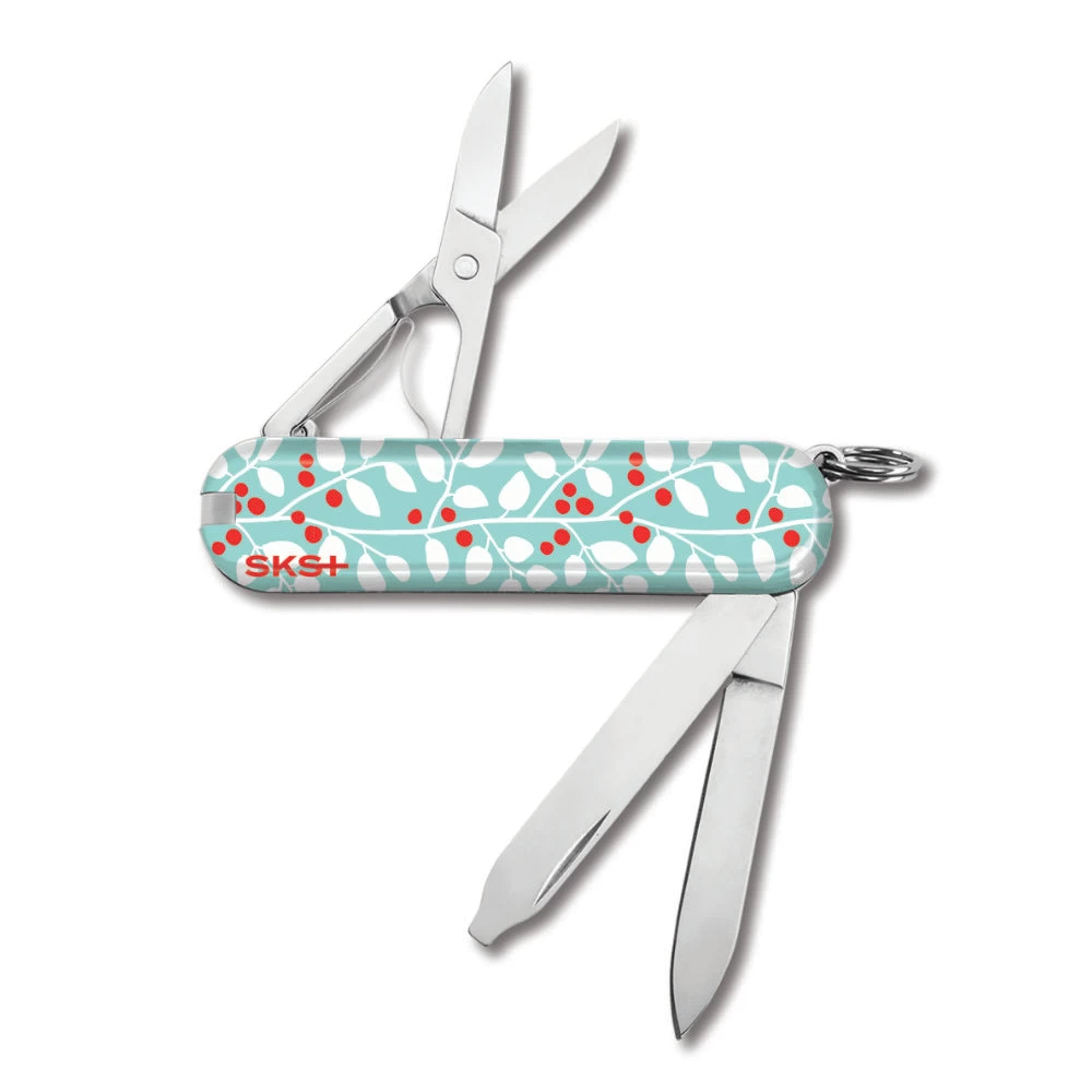 The Winterberry Classic SD Swiss Army Knife by Victorinox is a Swiss Knife Shop Design Studio creation that illustrates the cool of winter with a snap of red berry color. There is a small SKS logo on the back, as this knife was created by our SKS Design Studio.